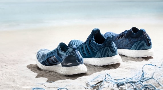 Memperingati Hari Bumi sedunia, Adidas bekerjasama dengan pegiat lingkungan pantai Parley, akan meluncurkan beberapa produk mereka ke pasar. Hingga saat ini, sudah ada tiga jenis sepatu berbahan dasar 95 persen sampah laut yang mereka desain. Ketiganya adalah original Ultra Boost, Ultra Boost Uncaged dan Ultra Boost X. Adidas mengungkapkan, paling tidak sepatu Adidas x Parley ini bisa mengurangi 11 botol plastik sampah untuk satu buah sepatu. Ini merupakan kolaborasi kedua perusahaan untuk mengurangi dampak lingkungan yang dihasilkan karena sampah laut yang tidak dapat terurai. Adidas berencana membuat satu juta sepatu berbahan sampah plastik sampai akhir tahun 2017. Kini, sudah ada 7.000 pasang sepatu UltraBoost yang siap dijual.