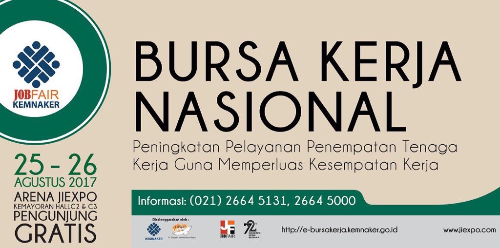 Job Fair Nasional 2017 yang merupakan kerja sama Kemnaker dengan PT Jakarta International Expo (JIExpo) mengusung tema “Peningkatan Pelayanan Penempatan Tenaga Kerja guna Memperluas Kesempatan Kerja. ”