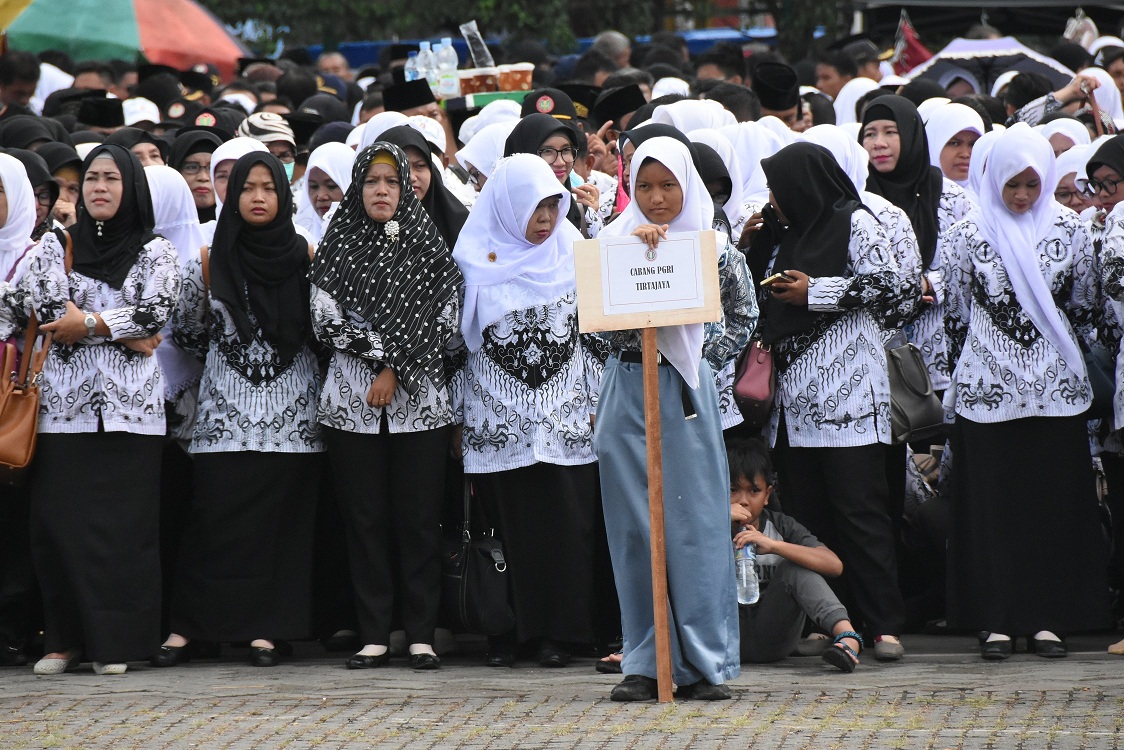 “Guru sebagai sosok utama dalam satuan pendidikan formal memiliki tanggung jawab membentuk karakter peserta didik melalui harmonisasi olah hati, olah rasa, olah pikir, dan olah raga,” demikian sambutan Menteri Pendidikan dan Kebudayaan Republik Indonesia (Mendikbud RI) Muhadjir Effendy, yang dibacakan Bupati Karawang, Hj. Cellica Nurrachadiana, pada peringatan Hari Guru Nasional di Lapang Karangpawitan, Karawang, Senin, (27/11/2017).