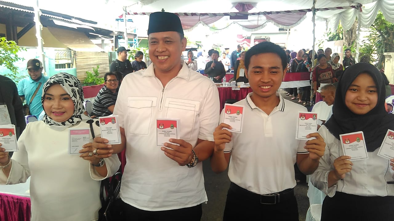 Kota Bekasi, SpiritNews-Calon Wakil Walikota Bekasi nomor urut satu, Tri Adhianto mendatangi untuk menggunakan hak suaranya pada Tempat Pemungutan Suara (TPS) 19, Jalan Pulau Nias, Komplek Deperla, Kelurahan Duren Jaya, Kecamatan Bekasi Timur, Rabu (27/6/2018).