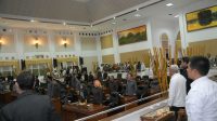 Sebelumnya ada laporan dari Pansus B DPRD dan pandangan umum fraksi-fraksi DPRD terhadap rancangan peraturan daerah tersebut. Secara keseluruhan dapat disimpulkan bahwa terhadap Raperda tersebut dapat dipahami dan dimengerti. Dalam agenda tersebut tampak hadir unsur Forkopimda, Staff Ahli, Asda, Kepala Perangkat Daerah, Camat, Tokoh Agama, Pimpinan Organisasi Sosial Kemasyarakatan dan Insan Pers.(rls/red/sir)