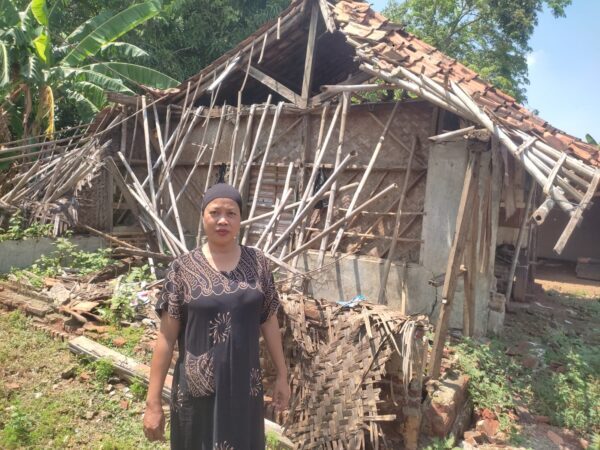 Nasib tak jauh berbeda dialami Sukarti (49). Rumahnya sudah roboh dan ia kini menumpang di kediaman saudara.