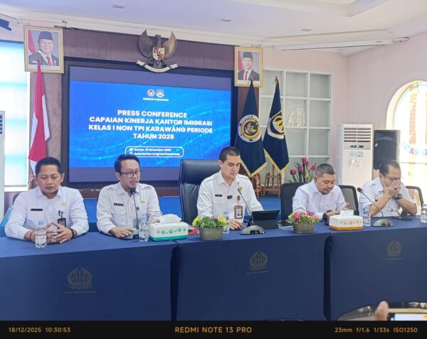 Hal ini diungkapkan langsung oleh Kepala Imigrasi Kelas I Non TPI Karawang, Andro Eka Putra saat merilis capaian kinerja sepanjang tahun 2025, Kamis, (18/12/2025). Ia memaparkan bahwa sampai dengan 15 Desember 2025 pihaknya berhasil memperoleh capaian 92,10 persen.