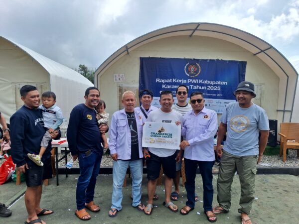 Kabupaten Karawang, spiritnews.co.id – Suasana acara Rapat Kerja Persatuan Wartawan Indonesia (PWI) Kabupaten Karawang yang digelar di Glamping Ipukan Highlind Kuningan, Sabtu – Minggu (22/12/2025) tiba-tiba terkejut ketika nama Nofiyan Sofiyadi (39) seorang wartawan lokal keluar sebagai pemenang hadiah umroh gratis dari Sanema Tour Karawang.