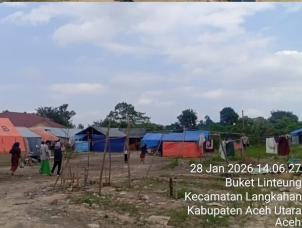 Kabupaten Aceh Utara, spiritnews.co.id – Sebanyak 597 dari 640 kepala keluarga (KK) di Gampong Buket Linteung, Kecamatan Langkahan, Kabupaten Aceh Utara, tercatat terdampak banjir. Hingga 62 hari pascabencana, warga setempat mengaku baru satu kali menerima bantuan beras dari pemerintah dengan jumlah 2 kilogram 2,05 ons per jiwa.